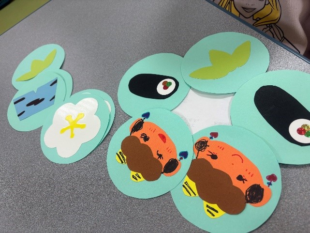 2月3日は節分ですね。小児病棟では、年齢別に節分をイメージした絵合わせカードと鬼のボーリング、6面パズル、お面などの手作り玩具を入院している子どもたちにプレゼントしました。 6歳のKちゃんには絵合わせカードの鬼に顔を描いてもらいました。Kちゃんはお化粧が大好きでお出かけをするときは、お化粧をしてから出かけるとお話ししてくれました。鬼にもしっかりお化粧をしてかわいい鬼が出来上がりました。