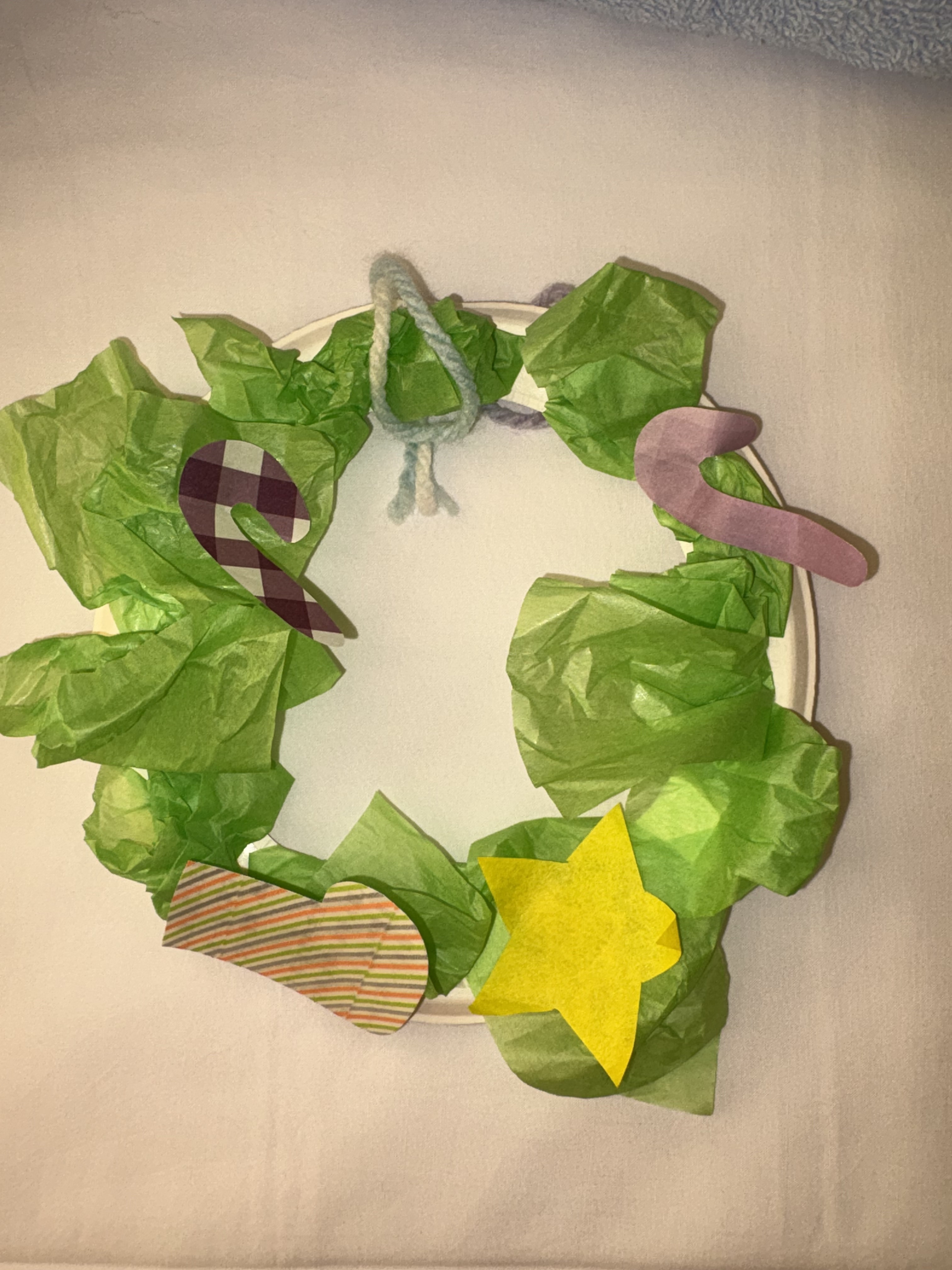乳児の8559;ちゃんとご家族の方と一緒に、お花紙を使ってツリーをイメージしながらクリスマスリー...