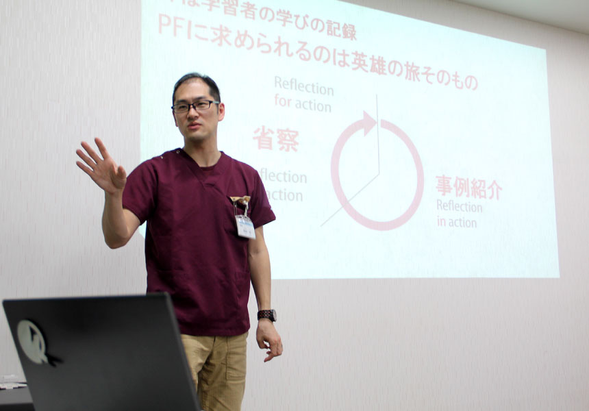 専門医取得後は当科スタッフとして病棟・外来の指導をメインに行っています。EBMや家庭医療などはあえて言語化しないと初学者には分かりづらい部分も多く、それらのフレームワークなどを使いながら理論と実践の溝を埋めていきます。